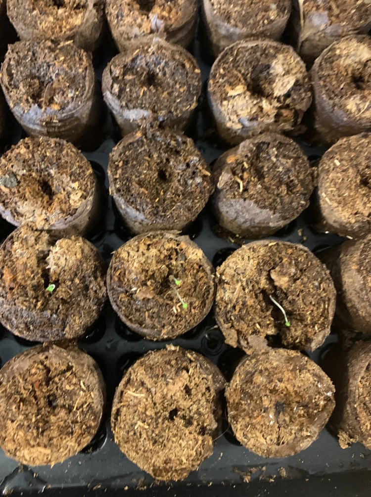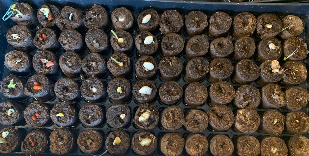 I am looking for all sorts of ways to display our hard work when the time comes to transplant them and the possibilities are endless. I am focusing not only on what I like to use when cooking but ideas for repelling flies and mosquitos as well as beautiful blooms! I’m particularly excited about my Moonflower Vine. I had one years ago in Birmingham and it is absolutely lovely. Here is what we will (hopefully) have to enjoy over the next few months- tomatoes, asparagus beans, okra, zucchini, lima beans, sweet bell peppers, squash, corn and watermelon (the boys really wanted this but I don’t think it will work with our limited space), cucumbers, chives, rosemary, mint, parsley, basil, thyme, oregano, lavender, morning glories, marigolds, daisies and moonflowers.
